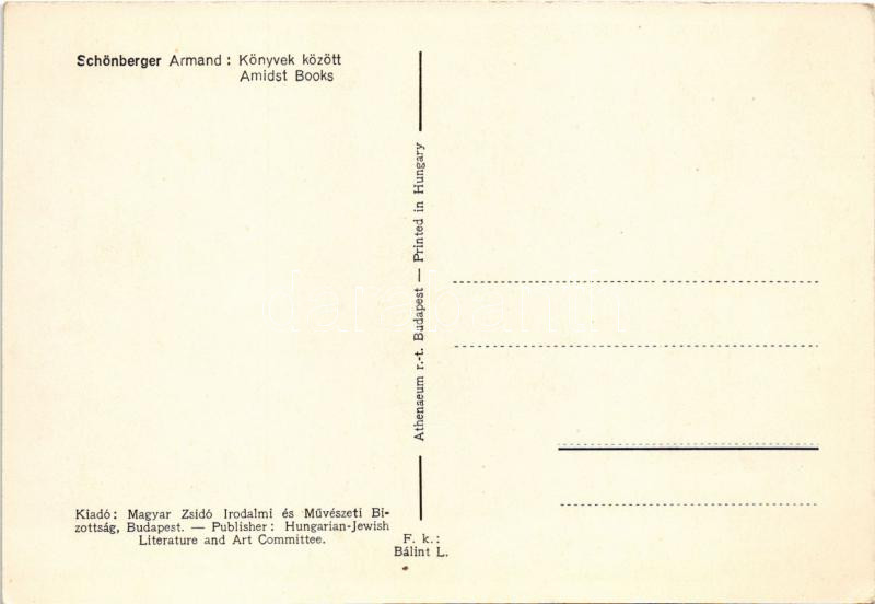 Könyvek között. Magyar Zsidó Irodalmi és Művészeti Bizottság (Budapest) kiadása. Judaika / Amidst Books. Publisher: Hungarian-Jewish Literature and Art Committee, Judaica s: Schönberger Armand