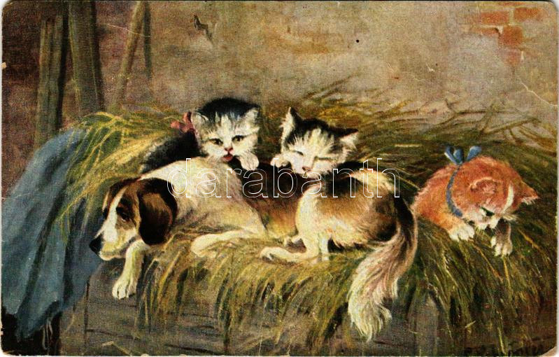 Kutya és cicák / Dog and cats. Künstlerkarte J.S. & Co. M. Ser. 48... https://www.darabanth.com/de/473-Fernauktion/473.0/Ansichtskarten/Katzen~2000042/Kutya-es-cicak-Dog-and-cats-Kunstlerkarte-JS-Co-M-Ser-487-92-fa~II3210965