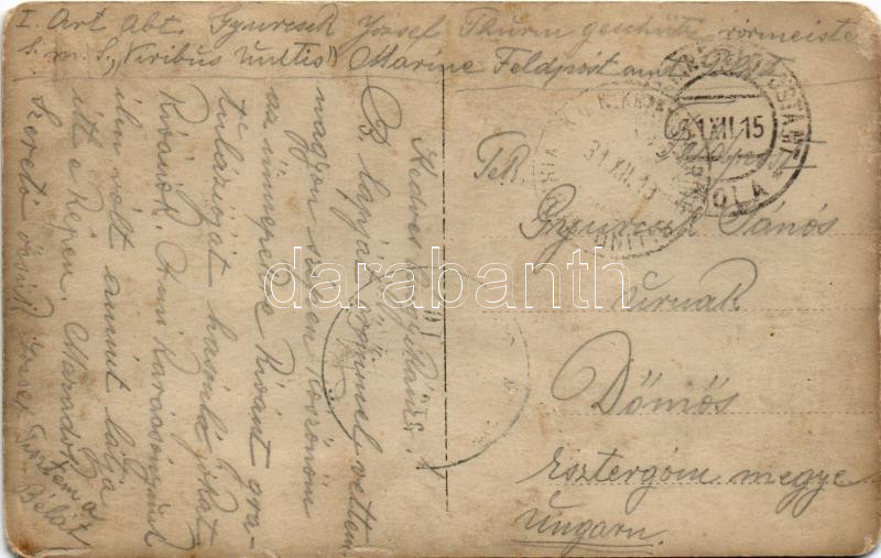 1915 SMS Viribus Unitis az Osztrák-Magyar Haditengerészet Tegetthoff-o... https://www.darabanth.com/de/473-Fernauktion/473.0/Ansichtskarten/Kriegsschiffe~2000028/1915-SMS-Viribus-Unitis-az-Osztrak-Magyar-Haditengereszet-Tegetthoff-osztalyu-csatahajo-matroz~II3209834