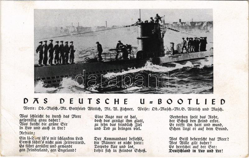 Das Deutsche U-Bootlied / German Navy submarine with mariners and song... https://www.darabanth.com/de/473-Fernauktion/473.0/Ansichtskarten/Kriegsschiffe~2000028/Das-Deutsche-U-Bootlied-German-Navy-submarine-with-mariners-and-song-vagott-cut~II3210274