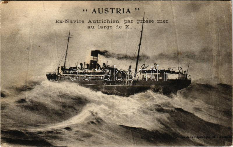 K.u.K. Kriegsmarine S.M. Dampfer XI (ex Austria) / Ex-Navire Autrichie... https://www.darabanth.com/de/473-Fernauktion/473.0/Ansichtskarten/Kriegsschiffe~2000028/KuK-Kriegsmarine-SM-Dampfer-XI-ex-Austria-Ex-Navire-Autrichien-par-grosse-mer-au-large-de-~II3152114
