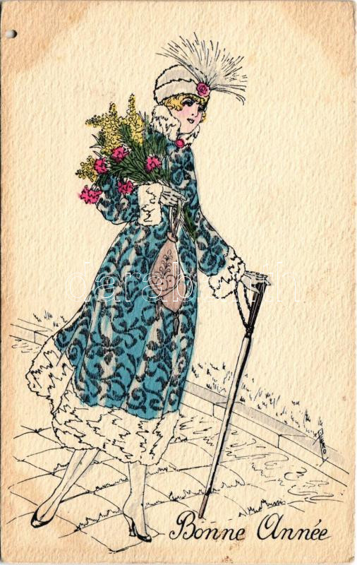 1918 Bonne Année / French lady art postcard with New Year greetings. S... https://www.darabanth.com/de/473-Fernauktion/473.0/Ansichtskarten/Kunstlerkarten~2000043/1918-Bonne-Annee-French-lady-art-postcard-with-New-Year-greetings-Souhaits-de-Femme-Serie-No-27~II3204025