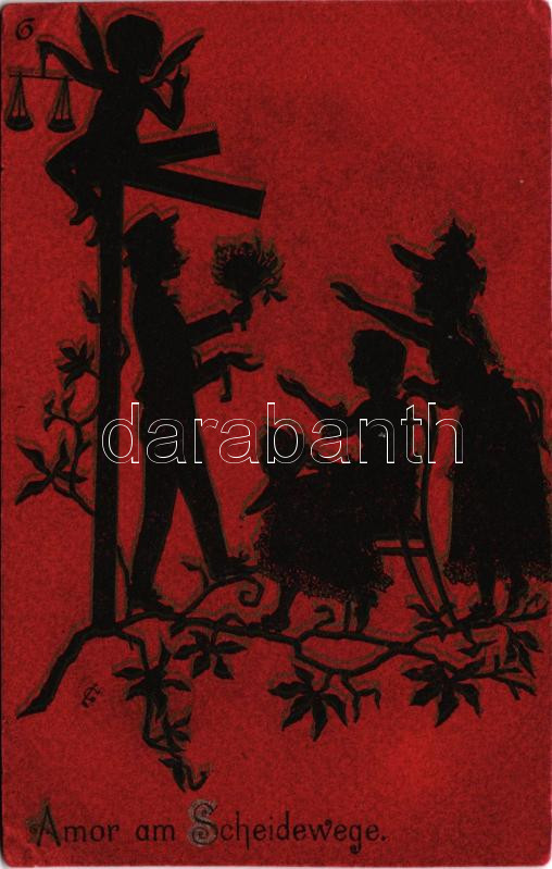 Amor am Scheidewege / Silhouette art postcard with cupid (EK) https://www.darabanth.com/de/473-Fernauktion/473.0/Ansichtskarten/Kunstlerkarten~2000043/Amor-am-Scheidewege-Silhouette-art-postcard-with-cupid-EK~II3204005