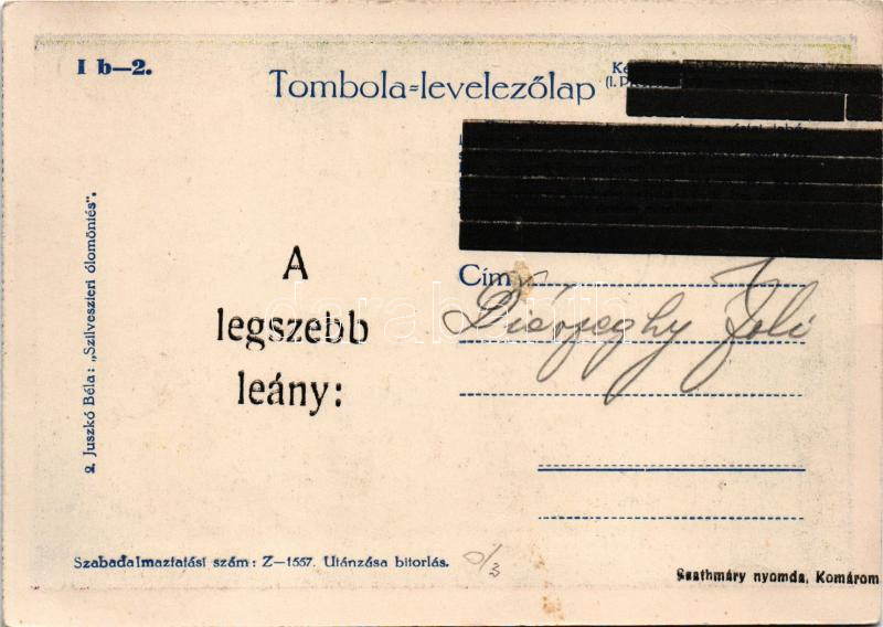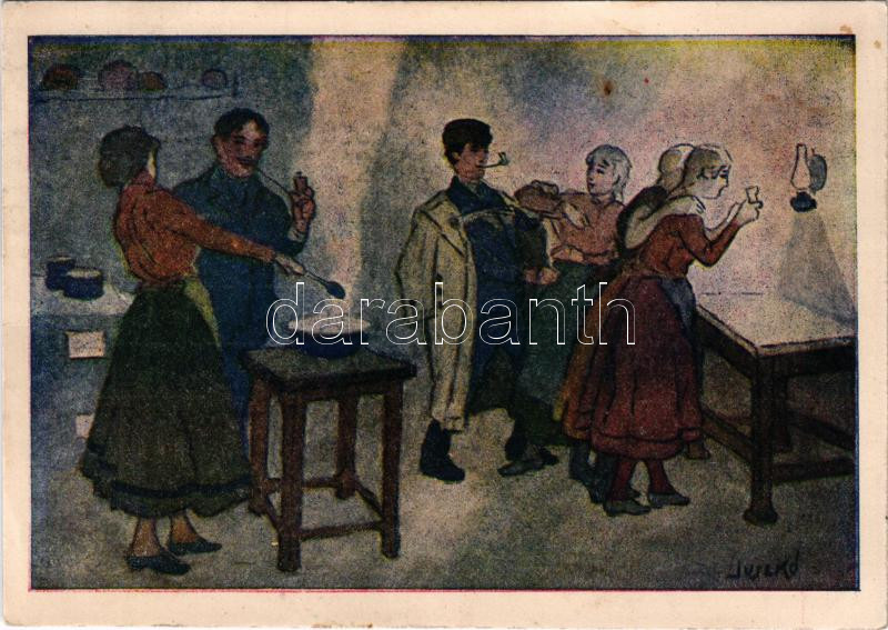 Szilveszteri ólomöntés (jövendölés a következő évre). Tombola-levelező... https://www.darabanth.com/de/473-Fernauktion/473.0/Ansichtskarten/Kunstlerkarten~2000043/Szilveszteri-olomontes-jovendoles-a-kovetkezo-evre-Tombola-levelezolap-I-b-2-s-JuszkC3~II3211751