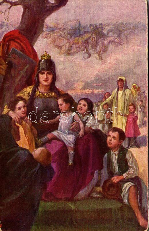 1915 Fölszárítom az özvegyek és árvák könnyeit! A m. kir. honvédelmi minisztérium hadsegélyező hivatala kiadása / WWI Austro-Hungarian K.u.K. military art postcard, support fund (Rb)