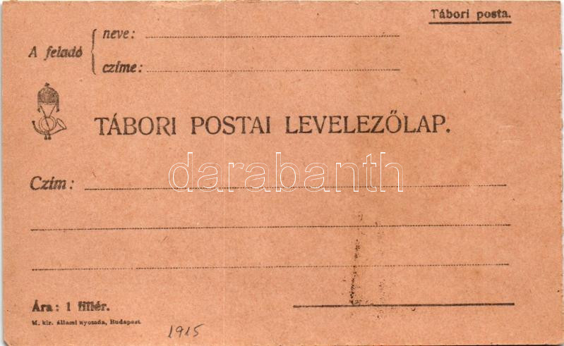 Beschreibung: 1915 Gligar - A galiciai harctérről. Saját kézzel rajzolt tábori postai levelezőlap / WWI K.u.k. military hand-painted field post s: Fáber József