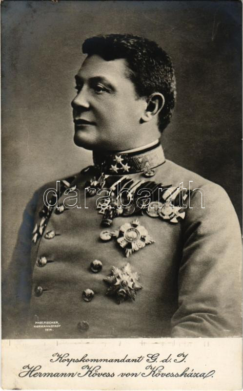 Korpskommandant G. d. I. Hermann Kövess von Kövessháza / WWI Austro-Hungarian K.u.K. military, Infantry General Hermann Kövess von Kövessháza. Phot. Fischer, Hermannstadt 1914. Postkartenverlag Brüder Kohn Wien I.