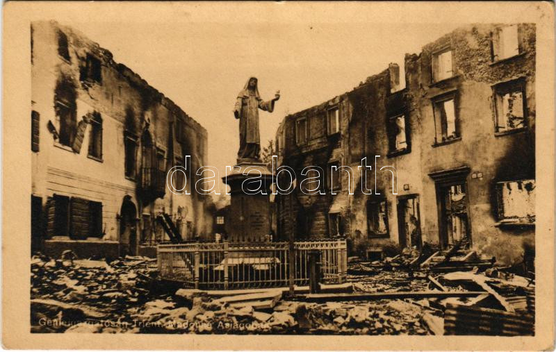 Beschreibung: Madonna Asiagoban. Genierigazgatóság Trient. Hadifénykép Kiállítás / WWI Austro-Hungarian K.u.K. military, ruins in Asiago (Südtirol) (EK)
