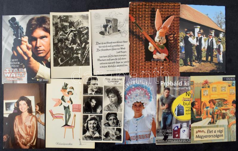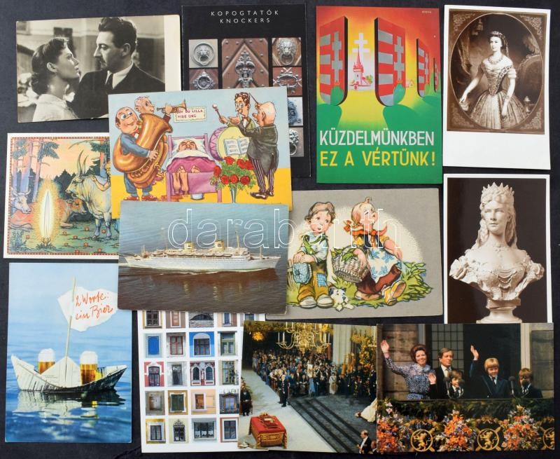 Beschreibung: ~600 db modern vegyes motívum, üdvözlő, reklám képeslap, érdekes vegyes anyag