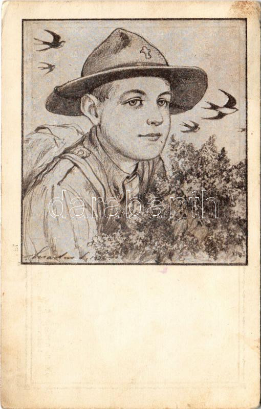 1926 Kiadja a Magyar Cserkészszövetség / Hungarian boy scout art postc... https://www.darabanth.com/de/473-Fernauktion/473.0/Ansichtskarten/Pfadfinder~2000021/1926-Kiadja-a-Magyar-Cserkeszszovetseg-Hungarian-boy-scout-art-postcard-s-Marton-L-EK~II3206655