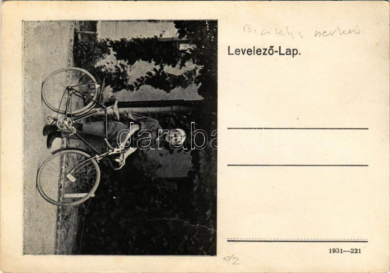 Biciklis cserkész / Scout with bicycle (fl) https://www.darabanth.com/de/473-Fernauktion/473.0/Ansichtskarten/Pfadfinder~2000021/Biciklis-cserkesz-Scout-with-bicycle-fl~II3211636