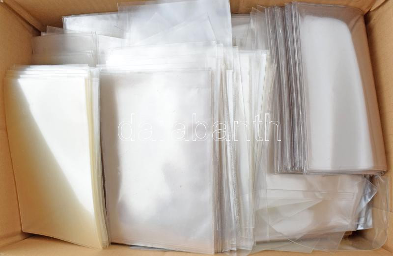 Beschreibung: Egy doboznyi (kb. 900 db) műanyag képeslaptartó tok / A box of plastic postcard holder cases, Cca. 900 pieces