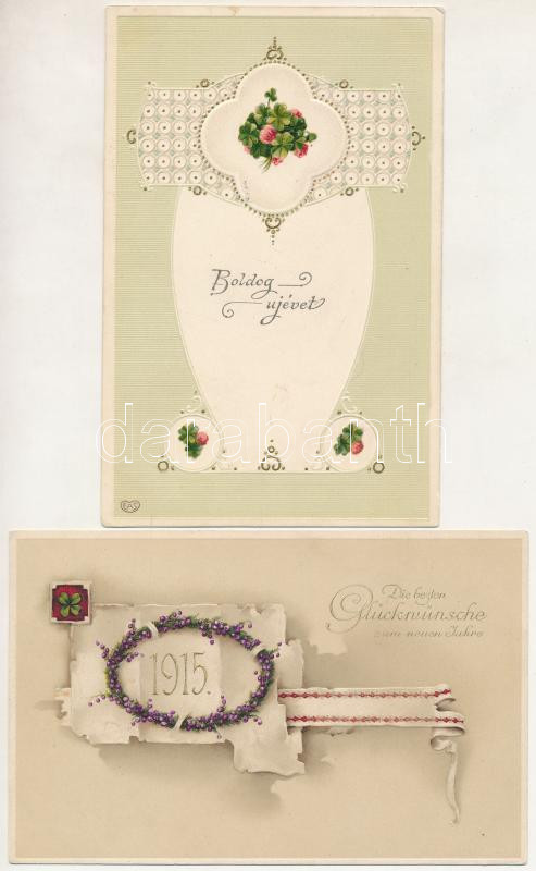 Beschreibung: 2 db RÉGI szecessziós dombornyomott és litho újévi üdvözlő képeslap / 2 pre-1915 Art Nouveau, embossed and litho New Year greeting postcards