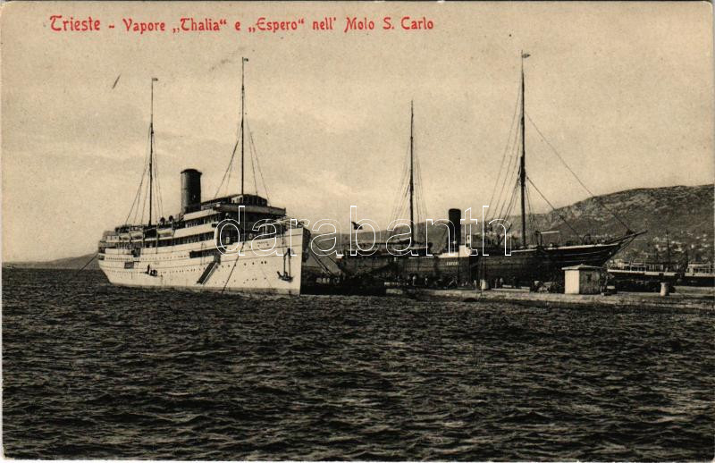 Trieste, Trieszt; Vapore THALIA e ESPERO nell' Molo S. Carlo / st... https://www.darabanth.com/de/473-Fernauktion/473.0/Ansichtskarten/Schiffe~2000029/Trieste-Trieszt-Vapore-THALIA-e-ESPERO-nell-Molo-S-Carlo-steamships-EK~II3206975