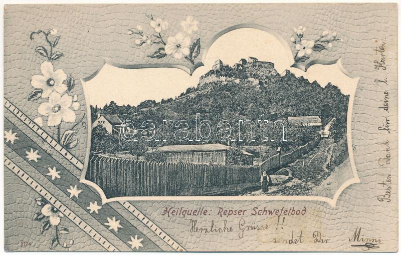 1905 Kőhalom, Reps, Rupea; Heilquelle Repser Schwefelbad / kénes fürdő... https://www.darabanth.com/de/473-Fernauktion/473.0/Ansichtskarten/Siebenburgen~2000007/1905-Kohalom-Reps-Rupea-Heilquelle-Repser-Schwefelbad-kenes-furdo-Szecesszios-viragos-ke~II3200764