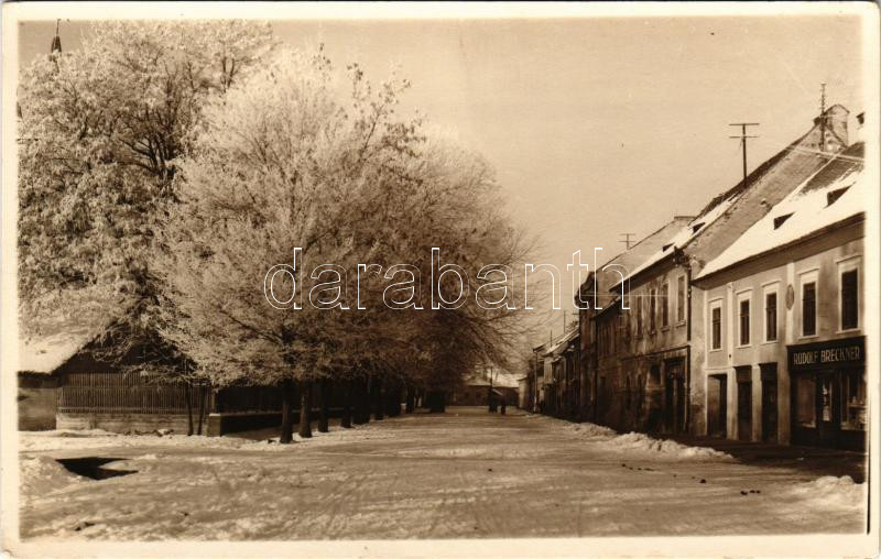 Beschreibung: Szászsebes, Mühlbach, Sebes; Rózsa utca, Rudolf Breckner üzlete télen / Rosengasse / street, shops, winter. photo