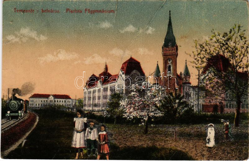 Temesvár, Timisoara; Belváros, Piarista főgimnázium, gőzmozdony, vonat... https://www.darabanth.com/de/473-Fernauktion/473.0/Ansichtskarten/Siebenburgen~2000007/Temesvar-Timisoara-Belvaros-Piarista-fogimnazium-gozmozdony-vonat-grammar-school-locomo~II3204373