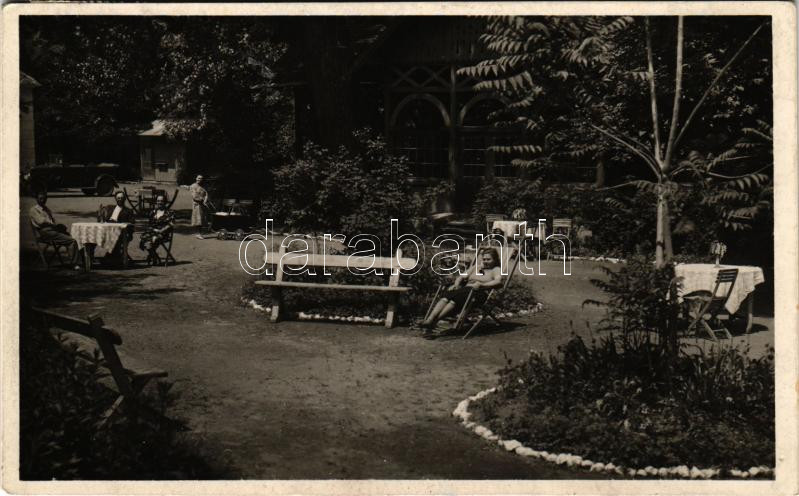 Beschreibung: 1940 Várgedefürdő, Kúpele Hodejov, Hodejov; fürdő, automobil. Pap Géza fényképész / spa, park, automobile
