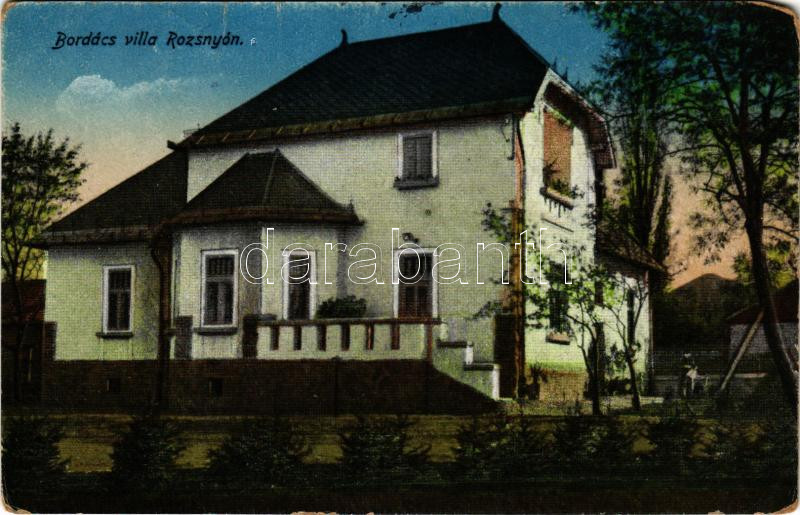 Rozsnyó, Roznava; Bordács villa (kopott sarkak / worn corners) https://www.darabanth.com/de/473-Fernauktion/473.0/Ansichtskarten/Slowakei~2000008/Rozsnyo-Roznava-Bordacs-villa-kopott-sarkak-worn-corners~II3212219