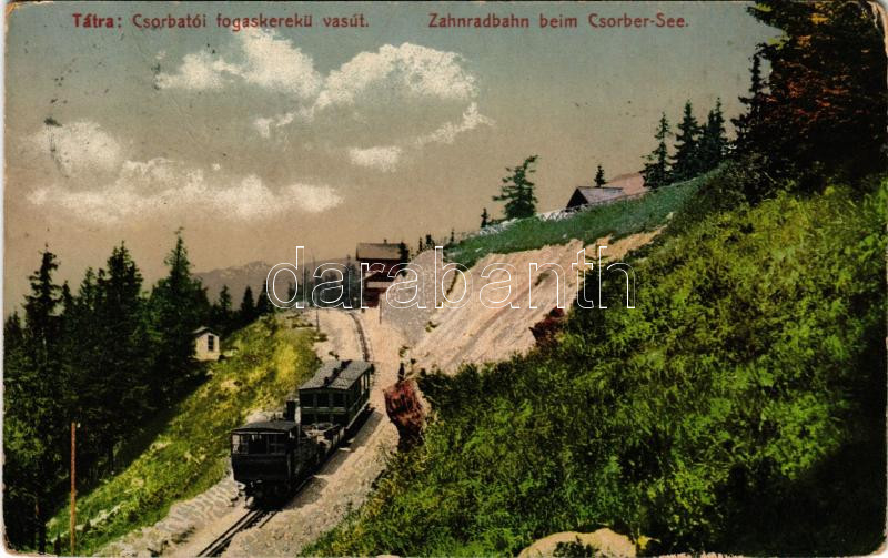 Tátra, Magas-Tátra, Vysoké Tatry; Csorba-tó, fogaskerekű vasút, vonat.... https://www.darabanth.com/de/473-Fernauktion/473.0/Ansichtskarten/Slowakei~2000008/Tatra-Magas-Tatra-Vysoke-Tatry-Csorba-to-fogaskereku-vasut-vonat-Cattarino-S-utoda-Fo~II3203049