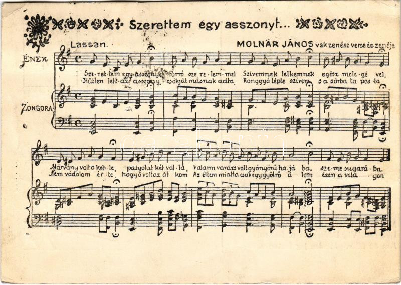 1951 Szerettem egy asszonyt... Molnár János vak zenész verse és zenéje... https://www.darabanth.com/de/473-Fernauktion/473.0/Ansichtskarten/Themen~2000016/1951-Szerettem-egy-asszonyt-Molnar-Janos-vak-zenesz-verse-es-zeneje-Molnar-Janos-vilagta~II3205474