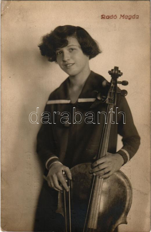 Radó Magda csellóművésznő. Tellér Frigyes áll. eng. magán gordonka-iskolájának hangversenye 1925. április 15-én szerdán este a Zeneművészeti Főiskola nagytermében (Budapest V. Liszt Ferenc tér 12.) (EK)