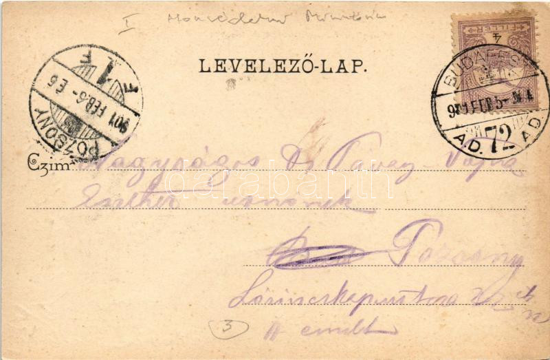 Beschreibung: 1901 Budapest I. Szent György tér, Honvédelmi Minisztérium. Divald Károly 195. (EK)