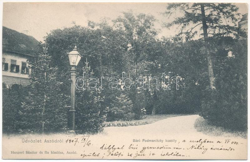 1907 Aszód, Báró Podmanitzky kastély. Huszerl Sándor és fia kiadása (E... https://www.darabanth.com/de/473-Fernauktion/473.0/Ansichtskarten/Ungarn~2000125/1907-Aszod-Baro-Podmanitzky-kastely-Huszerl-Sandor-es-fia-kiadasa-EK~II3213185