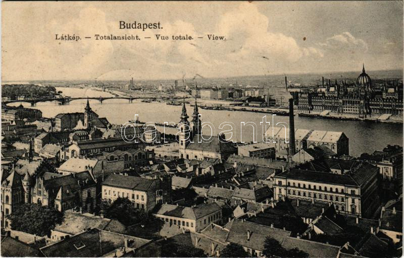 Beschreibung: 1915 Budapest I. Víziváros, Blum-féle részvénytársaság gőzmalom, Duna, Országház, Batthyány tér (ázott sarok / wet corner)