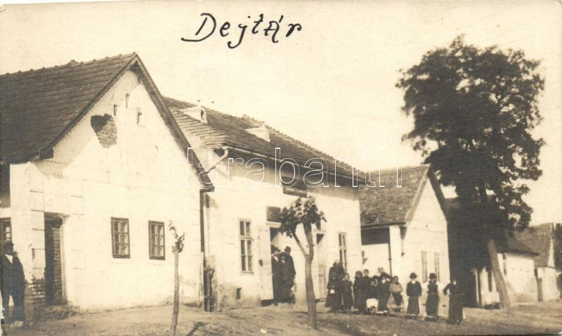 1926 Dejtár, Utcarészlet üzlettel, photo (ferdén vágott / slant cut) https://www.darabanth.com/de/473-Fernauktion/473.0/Ansichtskarten/Ungarn~2000125/1926-Dejtar-Utcareszlet-uzlettel-photo-ferden-vagott-slant-cut~II984114