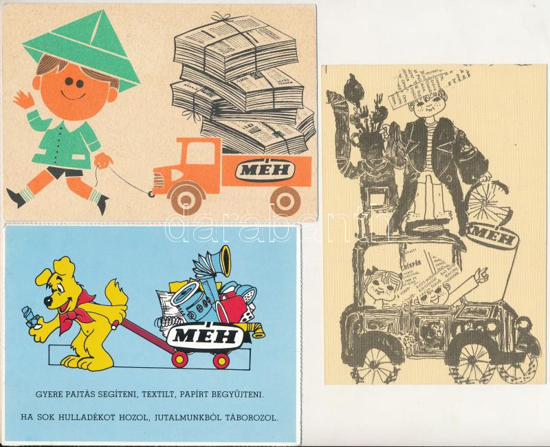 MÉH Hulladékgyűjtés - 3 db MODERN magyar reklám képeslap https://www.darabanth.com/de/473-Fernauktion/473.0/Ansichtskarten/Werbungen~2000047/MEH-Hulladekgyujtes-3-db-MODERN-magyar-reklam-kepeslap~II3211793