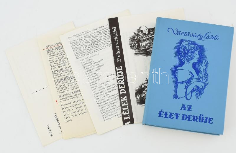 Vörösváry László: Az élet derűje. Vörösváry László (1908-1990) könyvkiadó által ALÁÍRT Bp., 1988, a szerző kiadása. Gózon Lajos illusztrációival. Kiadói nyl-kötés. A tételhez tartozik Vörösváry László 7 db könyvkiadással, műgyűjtéssel kapcsolatos reklám nyomtatványa.