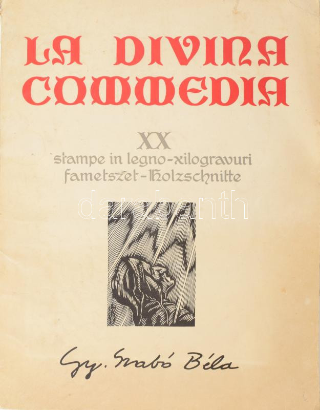 Dante Alighieri: La Divina Commedia. Kolozsvár, 1976, Dacia. Gy. Szabó Béla 20 db fametszetével illusztrálva. Magyar, olasz, román és német nyelven. Kiadói papírkötés, 43,5x33,5 cm.