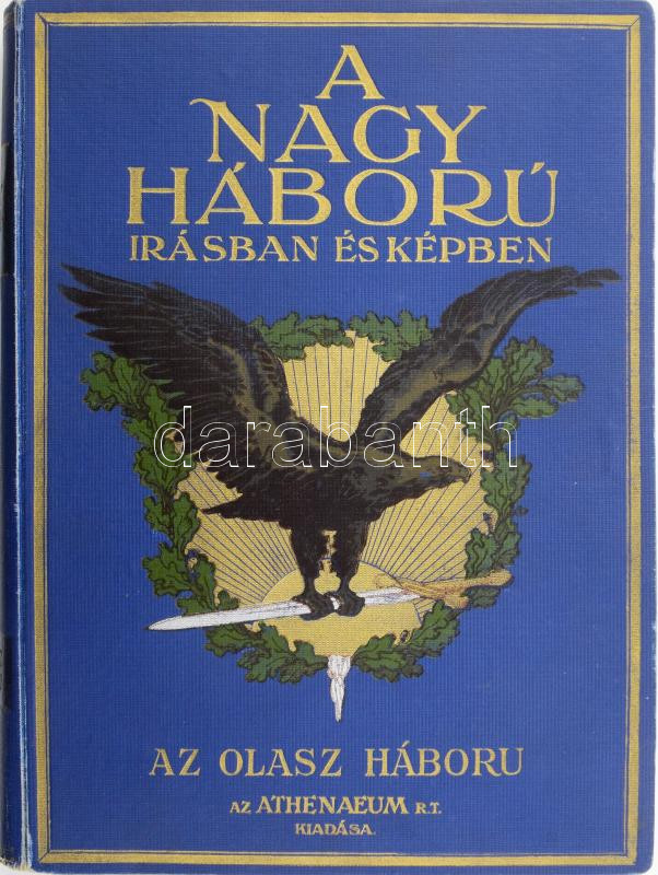 A Nagy Háború írásban és képben III. rész: Az olasz háború. Szerk.: Lándor Tivadar. Bp.,én., Athenaeum. Rendkívül gazdag képanyaggal illusztrált. Kiadói aranyozott egészvászon-kötés, kissé kopott borítóval, a gerinc alján kis sérüléssel, 3 lap kijár (214-219.)