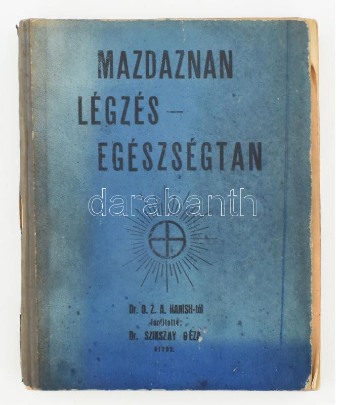 Dr. O.Z.A. Hanish: Mazdaznan légzés - egészségtan. Ford.: Dr. Szikszay Géza. cca 1930/40, h.n., sérült félvászon kötés, elvált lapokkal, firkával, aláhúzással.