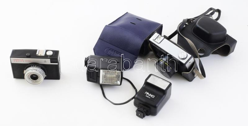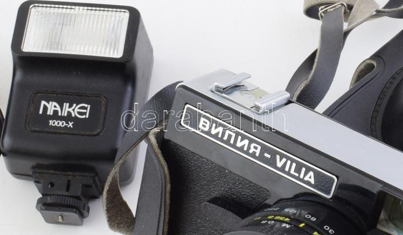 Beschreibung: Belomo Vilia szovjet fényképezőgép Triplet 69-3 4/40 objektívvel + Naikei 1000-x vaku + Norma Fil-16 vaku + Smena 8M fényképezőgép