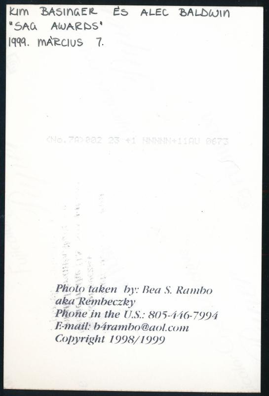 1999 Kim Basinger színésznő és Alec Baldwin, feliratozott, pecséttel j... https://www.darabanth.com/de/473-Fernauktion/473.0/Fotografie/Foto~500025/1999-Kim-Basinger-szineszno-es-Alec-Baldwin-feliratozott-pecsettel-jelzett-foto-15C39710-cm~II3212241
