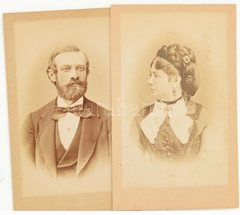 Beschreibung: cca 1872 Úriember és hölgy portréja, keményhátú fotó M. Rupprecht soproni műterméből, 10x6 cm