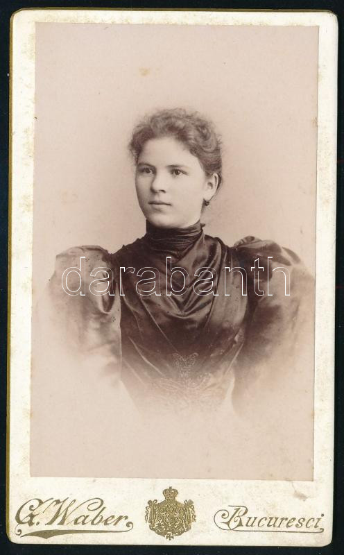 cca 1890 Női portré, keményhátú fotó Waber bukaresti műterméből, 10,5×... https://www.darabanth.com/de/473-Fernauktion/473.0/Fotografie/Foto~500025/cca-1890-Noi-portre-kemenyhatu-foto-Waber-bukaresti-mutermebol-10-5C3976-5-cm~II3207483
