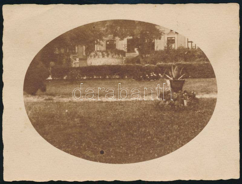 Beschreibung: cca 1900-1920 Aszód, a Podmaniczky-kastély (1891-től 1948-ig Polgári Leánynevelő Intézet) parkja, fotó, 12x9 cm