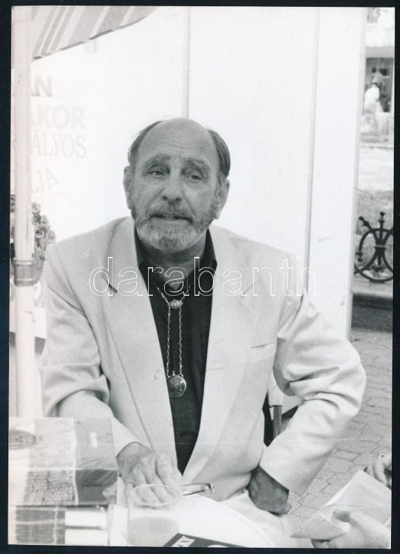 cca 1997 Kútvölgyi Mihály (1944-2023): Obersovszky Gyula (1927-2001) költő, író, újságíró portréja, feltehetően a budapesti könyvhéten, hátoldalán jelzett fotó, 15x10,5 cm