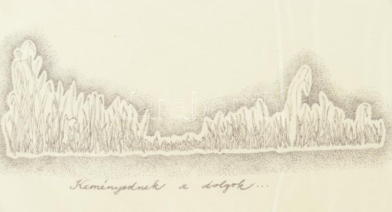 Ács István (1950-): Keményednek a dolgok, 1982. Tus, papír. Jelzett. 4... https://www.darabanth.com/de/473-Fernauktion/473.0/Gemalde-und-Grafiken/Gemalde-und-Grafiken~500003/Acs-Istvan-1950-Kemenyednek-a-dolgok-1982-Tus-papir-Jelzett-41x5-cm-Lap-teteje-kartonr~II3211939