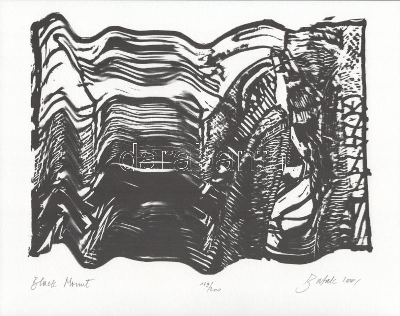 Butak András (1948-2021): Black Mount. Lito-ofszet, papír, jelzett, számozott (119/200), 23x29 cm. A 2001-ben megjelent In passing/Menet közben c. mappából.