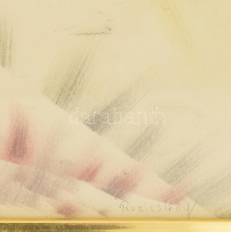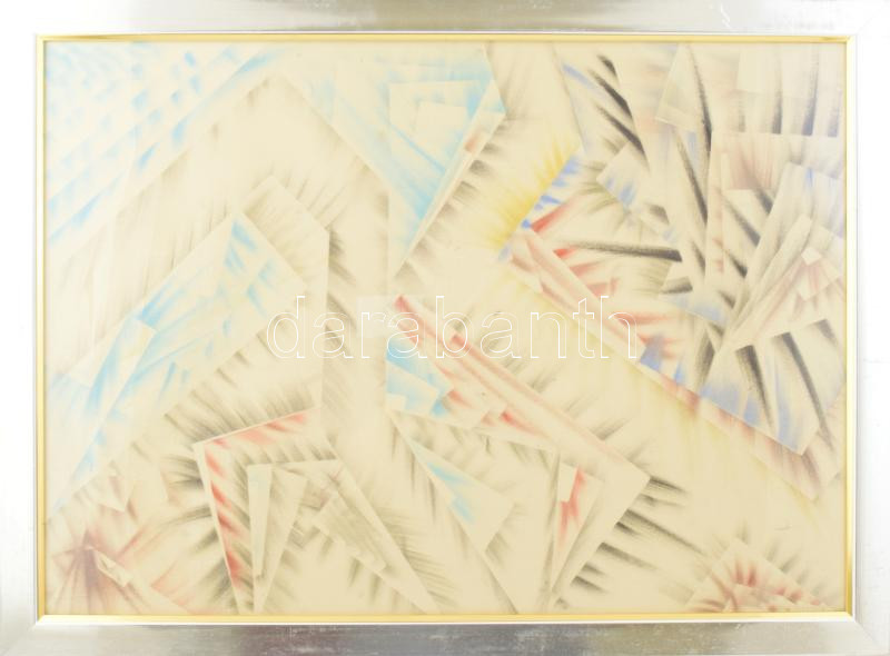 Ruzicskay György (1896-1993): Absztrakt kompozíció. Vegyes technika, papír, jelzett. Üvegezett, kissé kopott fakeretben, 50x70 cm / mixed technique on paper, signed, framed