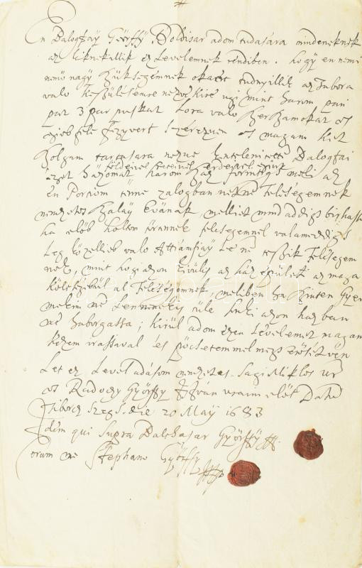 1683 Szeged Györffy Boldizsár adóslevele 300 ft ról, magyar nyelven https://www.darabanth.com/de/473-Fernauktion/473.0/Kunst-Dokumente-andere-Sammelgebiete/Dokument~500022/1683-Szeged-Gyorffy-Boldizsar-adoslevele-300-ft-rol-magyar-nyelven~II3213821
