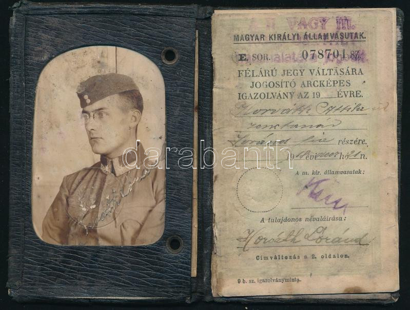 1918-1920 MÁV fényképes igazolvány, egyenruhás katonafotóval, a román ... https://www.darabanth.com/de/473-Fernauktion/473.0/Kunst-Dokumente-andere-Sammelgebiete/Dokument~500022/1918-1920-MAV-fenykepes-igazolvany-egyenruhas-katonafotoval-a-roman-megszallas-idejebol~II3211035