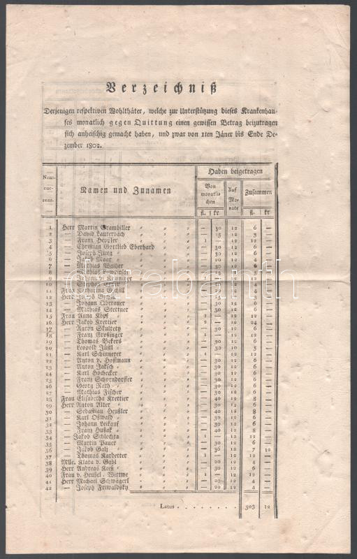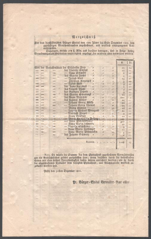 1802 Pest, kórházi ügyekkel kapcsolatos nyomtatvány, kimutatás https://www.darabanth.com/de/473-Fernauktion/473.0/Kunst-Dokumente-andere-Sammelgebiete/Drucksachen~1000013/1802-Pest-korhazi-ugyekkel-kapcsolatos-nyomtatvany-kimutatas~II3204882