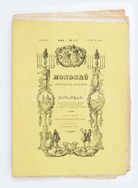 1844 Honderű. Szépirodalmi, művészeti és divatlap. II. évf.23. sz. Szerk. és kiadja: Petrichevich Horváth Lázár. Buda, Kir. Egyetem-ny.,(16) p. Mellékletek nélkül. Kiadói papírborítóban, fűzés nélkül.