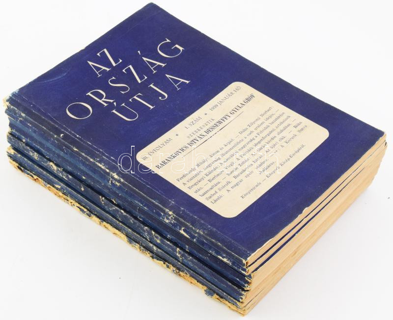 1939 Az Ország Útja. Antifasiszta szellemiségű állam- és nemzetpolitikai folyóirat. III. évf. 1-10., 12. sz. (Egy szám híján teljes évfolyam, a novemberi hiányzik). Szerk.: Barankovics István, gróf Dessewffy Gyula. Kiadói papírkötés, vegyes állapotban.