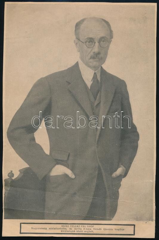 1941 Gróf Teleki Pál halála alkalmából kiadott kétoldalas megemlékezés https://www.darabanth.com/de/473-Fernauktion/473.0/Kunst-Dokumente-andere-Sammelgebiete/Drucksachen~1000013/1941-Grof-Teleki-Pal-halala-alkalmabol-kiadott-ketoldalas-megemlekezes~II3181469